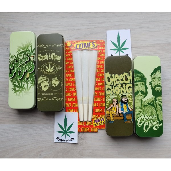 Metal dåse motiv Cheech og Chong. Med 3 stk. ks. cones