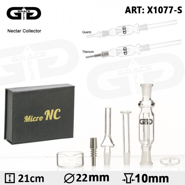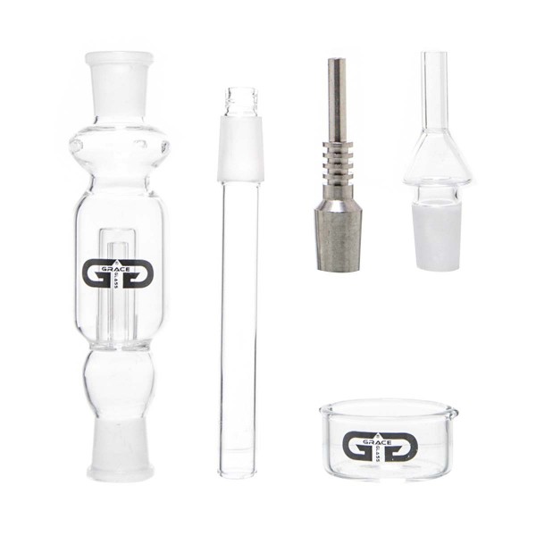 This peculiar Nectar Collector set comes with several smoking accessories operating in a single one! The basic Nectar collector body has a sure ground of 18.8mm, connecting to your quartz and titanium nail. You warm up your nails, you place your oil onto the glass dish, and you then simply enhale your smoke, which gets furthermore filtered by a percolator inside the Nectar collector body before reaching your mouth.